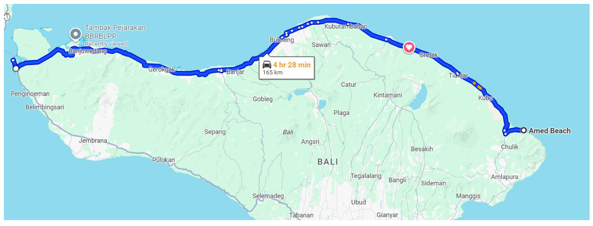 If you’re traveling from the west or east of Bali, the most convenient route is along the coastal highway — a wide, well-maintained road with no steep hills or mountain passes, making for a smooth and scenic journey.