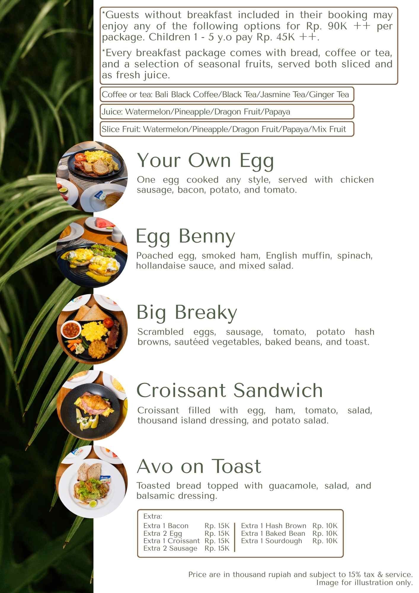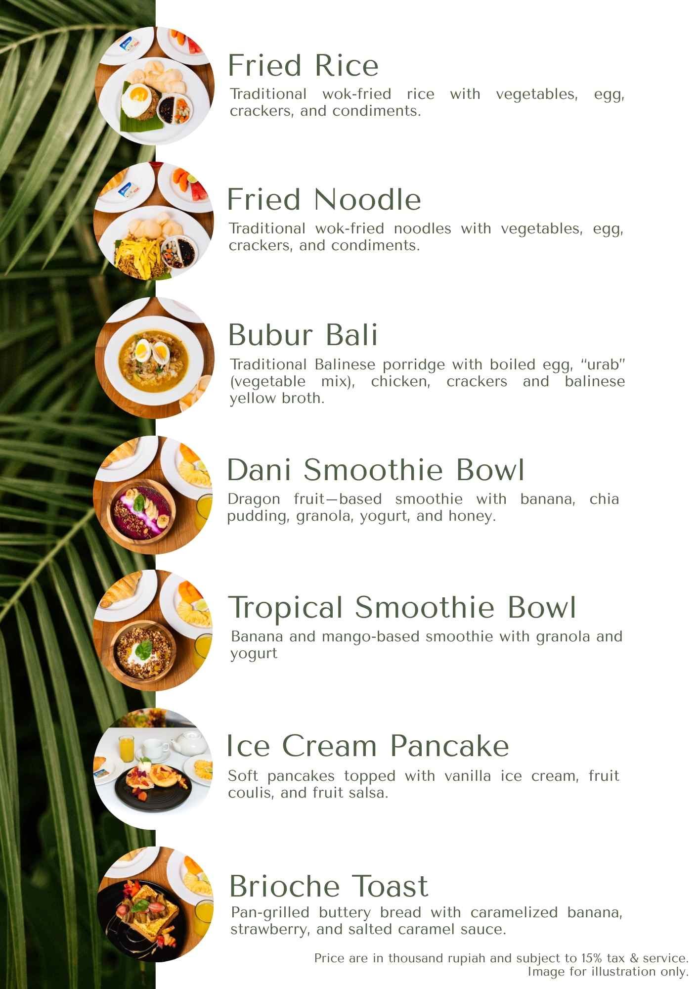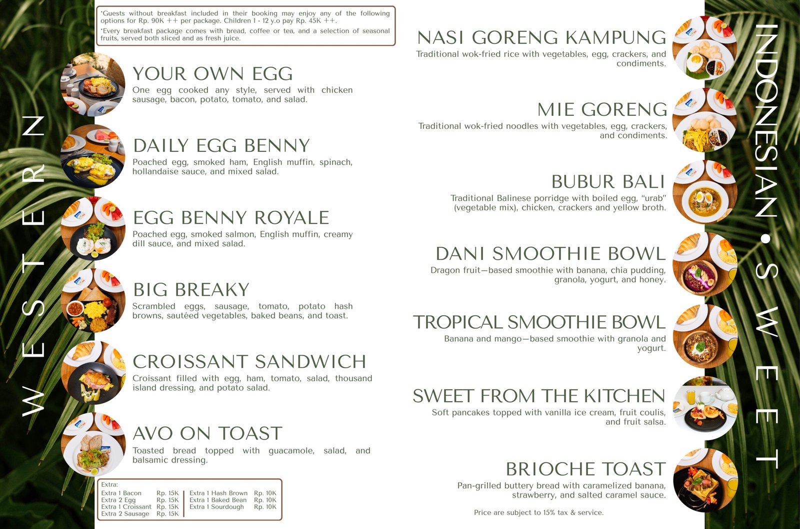 Our kitchen celebrates the flavors of Bali while offering the comforting classics of Western cuisine. Each dish is crafted with fresh, locally sourced ingredients. From an early breakfast under the morning sun to a romantic dinner as the sky turns gold, every visit is a chance to enjoy good food, refreshing breezes, and the beauty of the gardens and the sea.