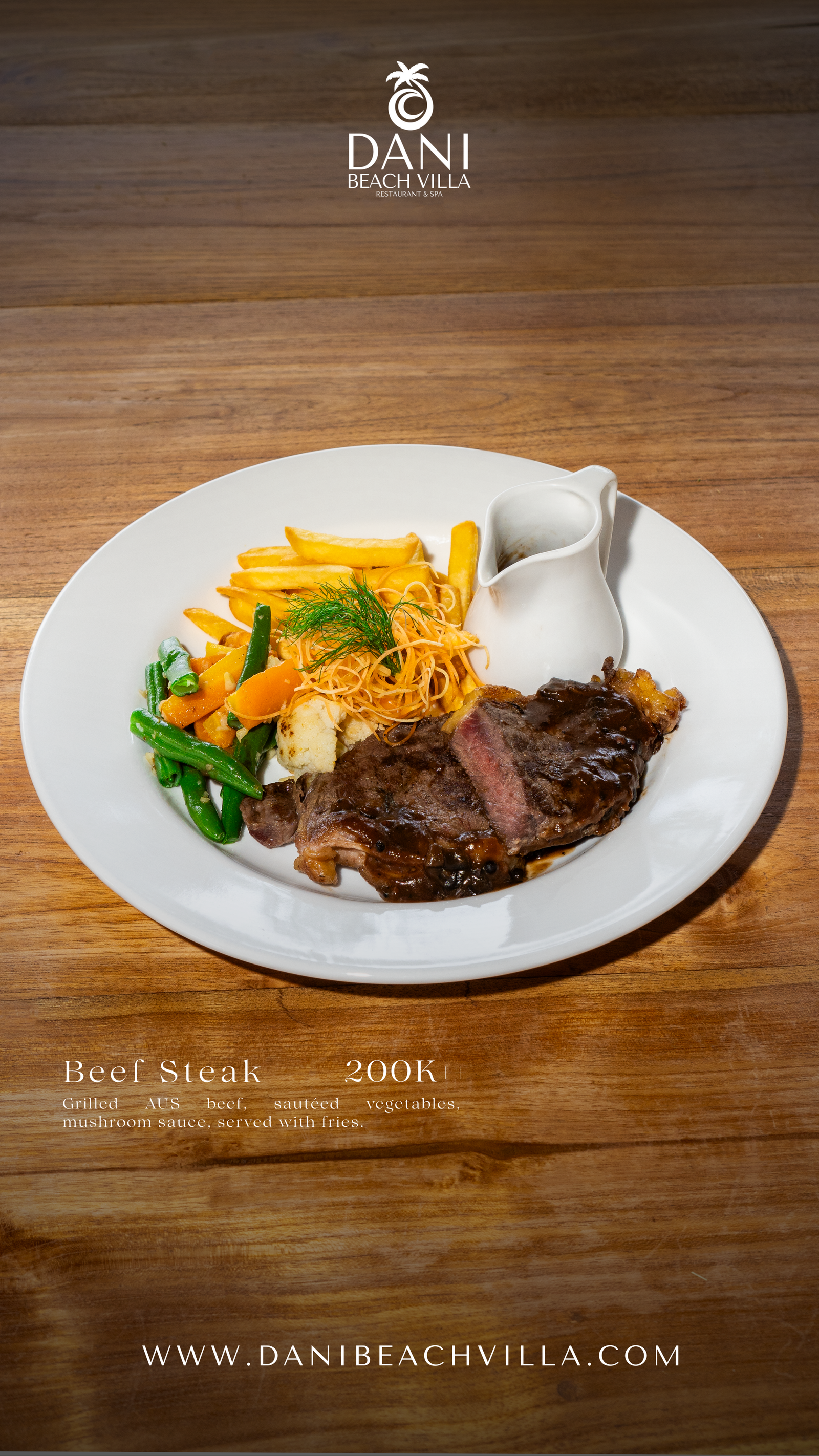 Set in the heart of our tropical garden, the Dani Beach Villa Restaurant welcomes you with the timeless charm of a traditional wooden Joglo. This open-air dining space embraces the island’s breeze, letting you hear the gentle roll of the waves and feel the warm glow of Bali’s sun. Surrounded by lush greenery and facing the vast expanse of the North Bali sea, it’s a place where every seat comes with a view worth lingering over.